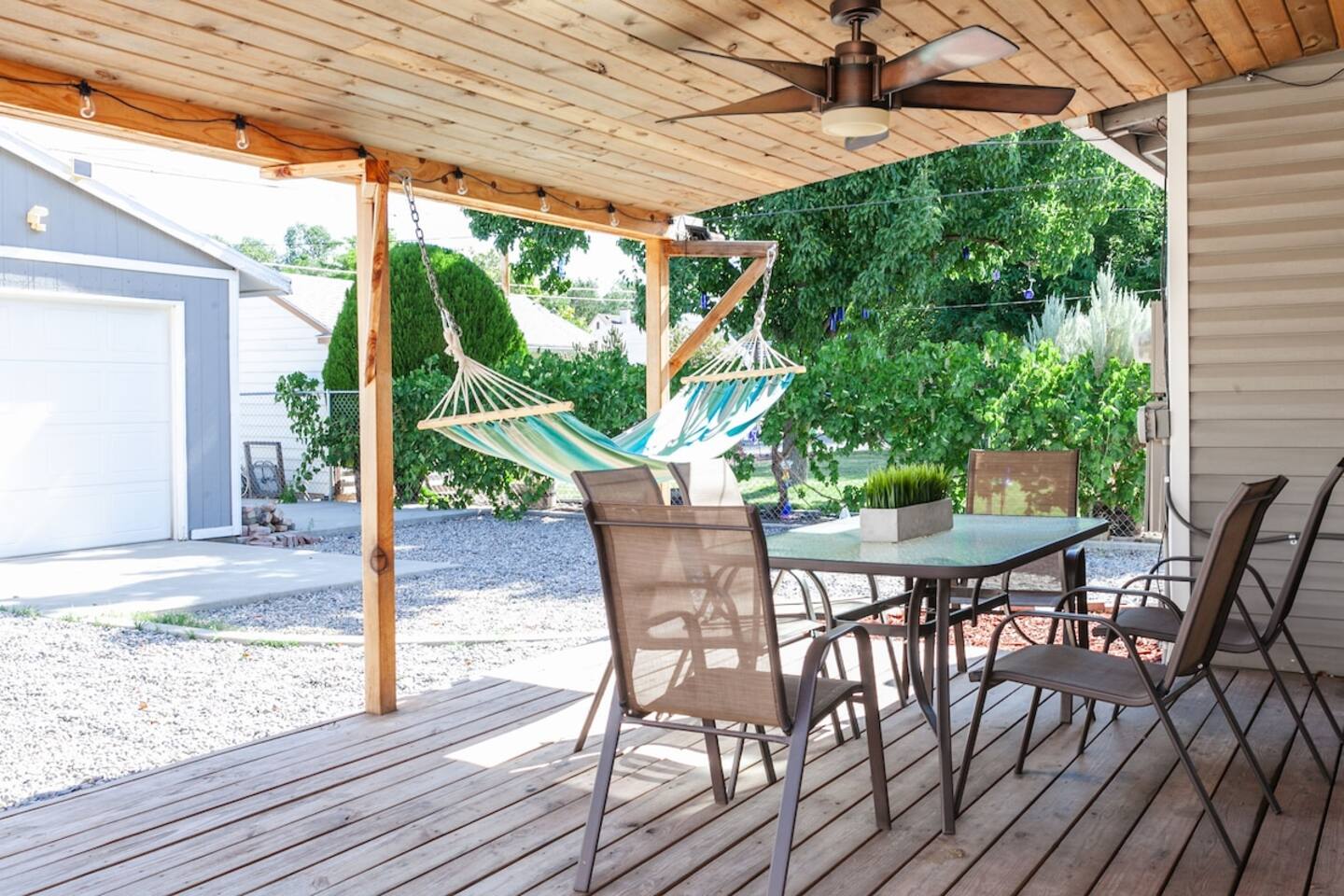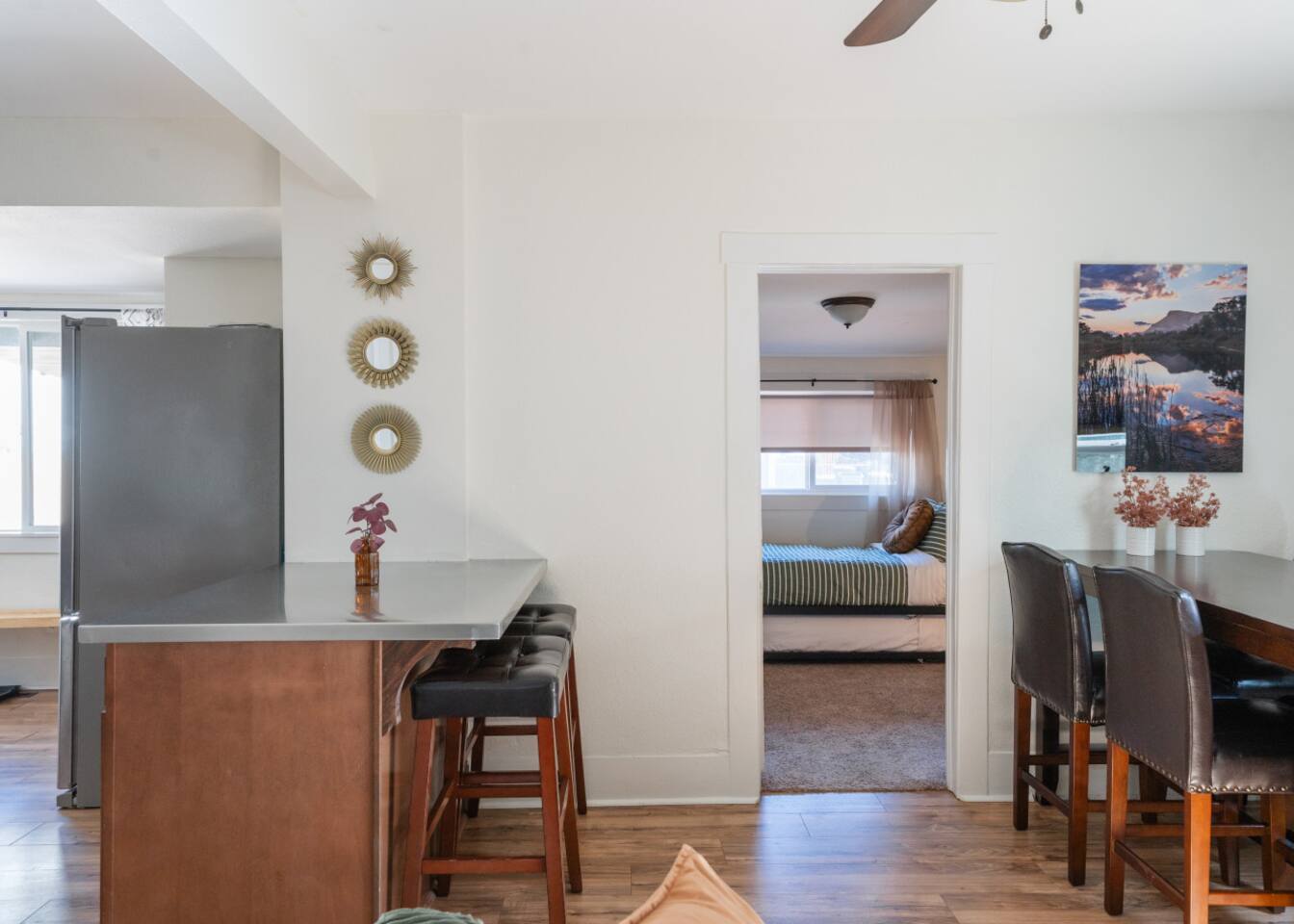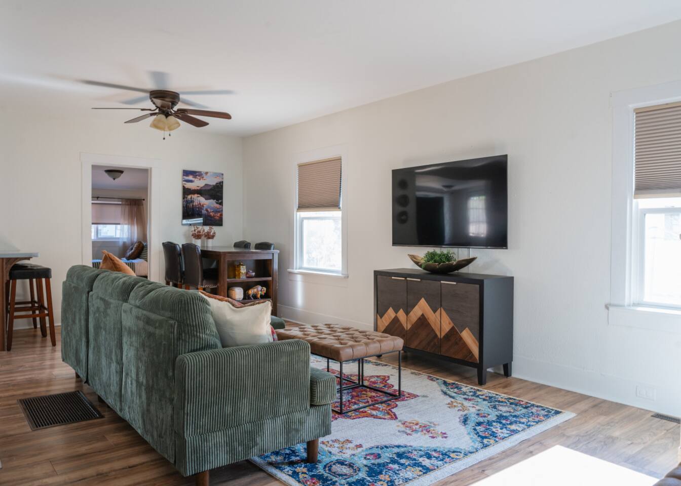 Discover the heart of Colorado in our Downtown Grand Junction home, a mere stroll from Main Street’s charm, Lincoln Park, and the excitement of Sam Suplezio Field. Our dog-friendly abode celebrates artistic talent with Dovile Photography’s impressive prints. Start your day in the sun-room, inspired by the Garden of The Gods, or let the kids embark on a playful journey in the Durango/Silverton Train-themed room. Upstairs, a panoramic photo captures Colorado’s grandeur. Outside, is your private haven with a fenced yard, hammock, BBQ grill, and a cozy covered porch..